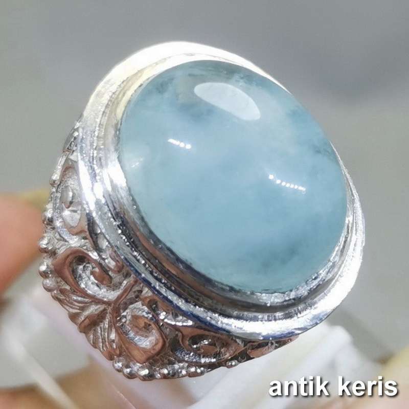 Jual Batu Akik Aquamarine Kecubung Biru Laut Asli Bukan Sintetis Ring Perak Di Seller Antik Keris Kota Surakarta Solo Jawa Tengah Blibli